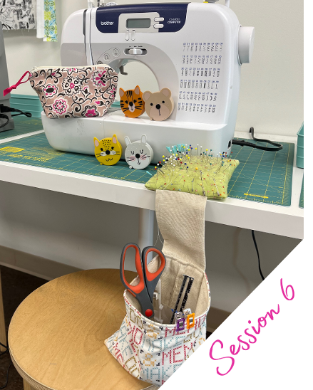 Session 6--Make some essential sewing organizers. A pincushion, thread catcher and tool pouch will keep your young sewist organized at home.