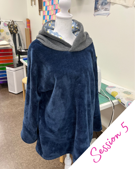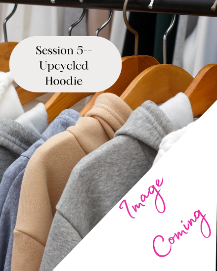 Session 5--Turn a fleece or quilted blanket into a hoodie. Bring a twin size or larger blanket from home, or a small selection will be available to choose from at the studio. Make a custom up-cycled hoodie!